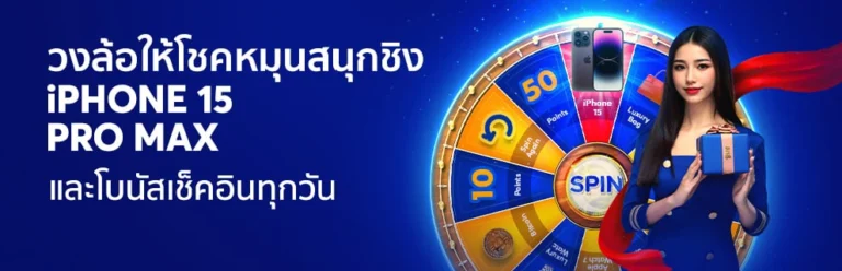 ฟรี! ฟรีสปินทุกวัน พร้อมลุ้นรับ iPhone 15 Pro max และ แลกพ้อยต์รับของรางวัล!